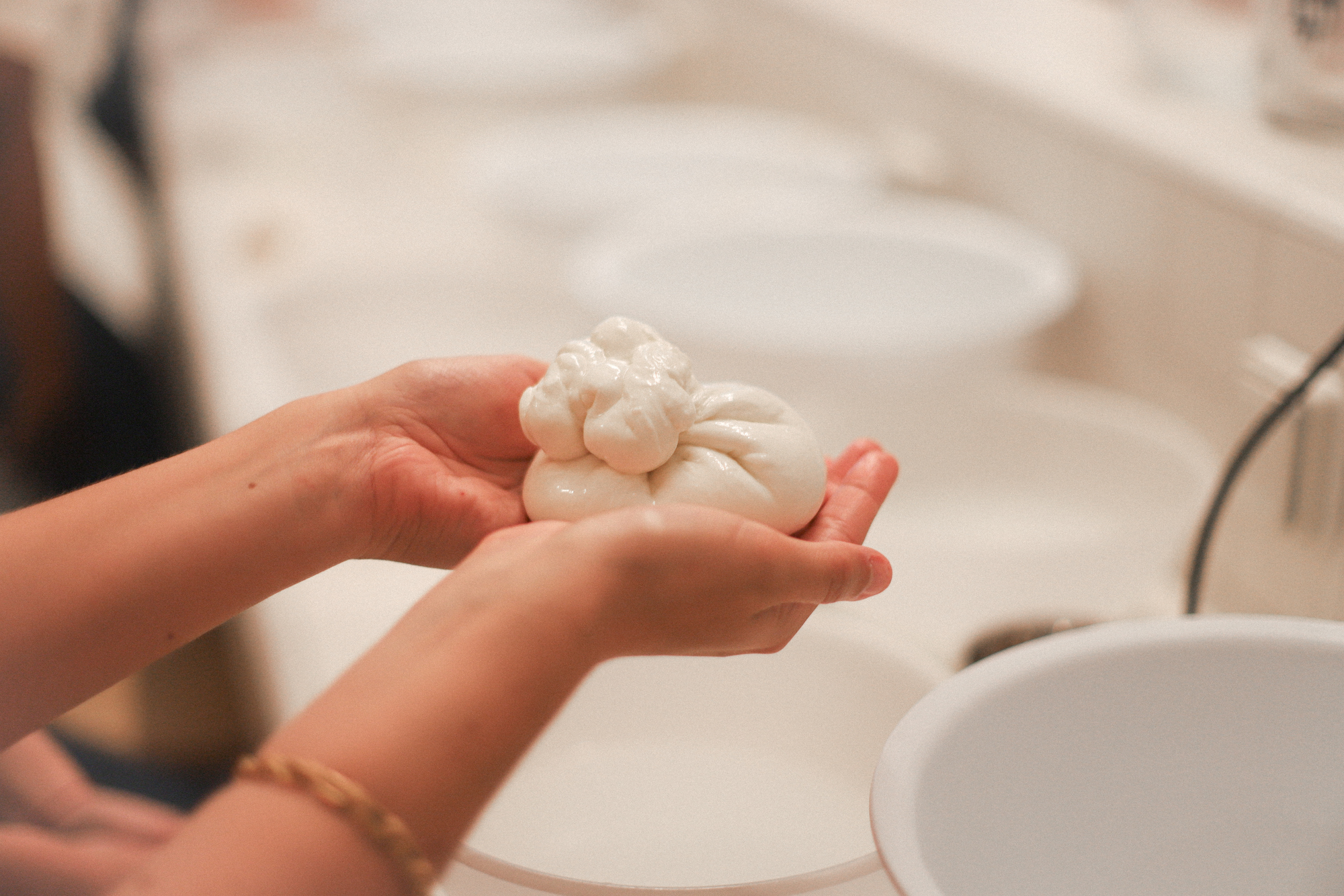 À la carte de toutes les cantines à la mode, au centre de toutes les tables de brunch à la maison, présente chez tous les fromagers de quartier… La burrata s’est bel et bien installée dans nos habitudes, à grands coups de cœur coulant aussi photogénique que gastronomique. Pour epicery, je me suis rendue à La Latteria pour découvrir les secrets de fabrication de la burrata. Mamma mia !